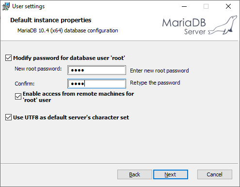 - Use UTF8 as default server's character set: MariaDB내에서 한글이 안깨지게 하려면 체크